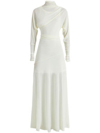 Paula maxi dress Highlights - Pale yellow - Stretch-design - Semi-sheer construction - Jersey texture - Slip-on style - Roll neck - Extra-long sleeves - Draped detailing - Fitted waistline - Straight hem - Floor-length Made in Italy Composition Viscose 82%, Polyamide 18% Washing instructions Dry Clean Only