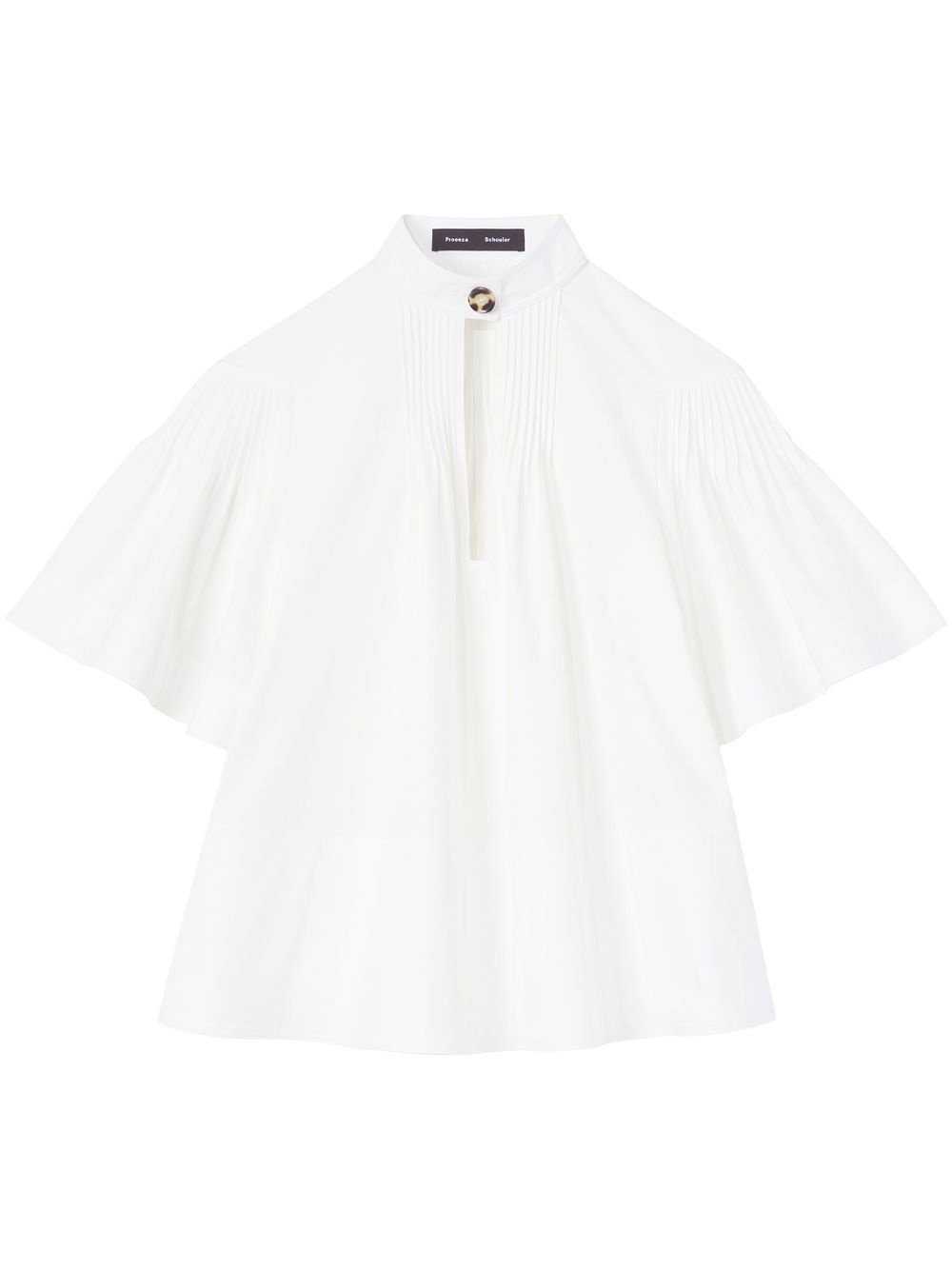 pintuck-detail flared blouse white cotton pintuck detailing front button fastening keyhole neck short sleeves flared straight hem Imported Composition Cotton 100%