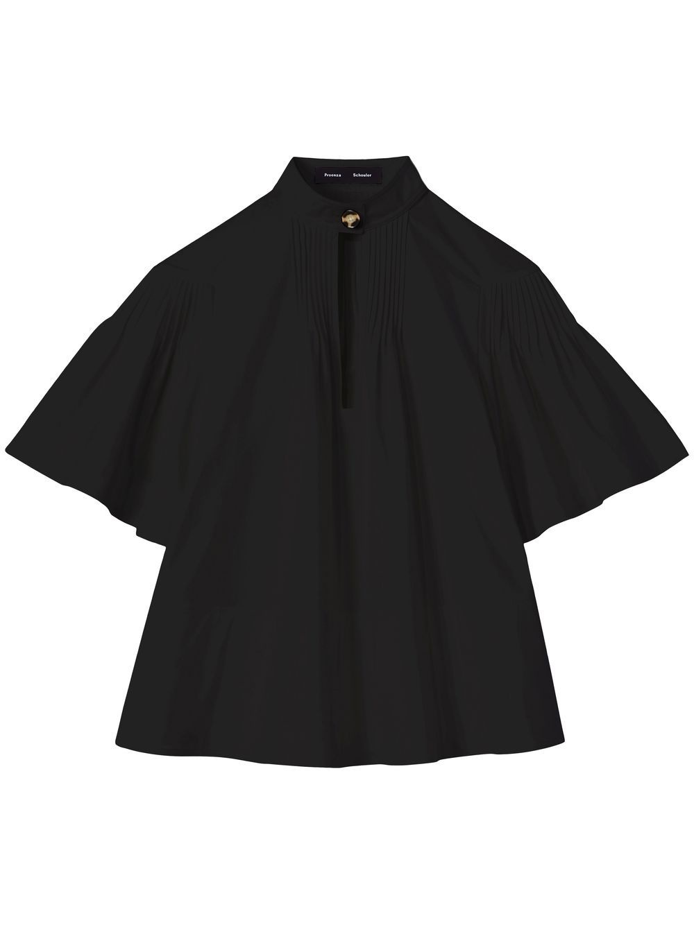 pintuck-detail short-sleeved blouse black cotton pintuck detailing front button fastening high neck short sleeves flared straight hem Imported Composition Cotton 100%