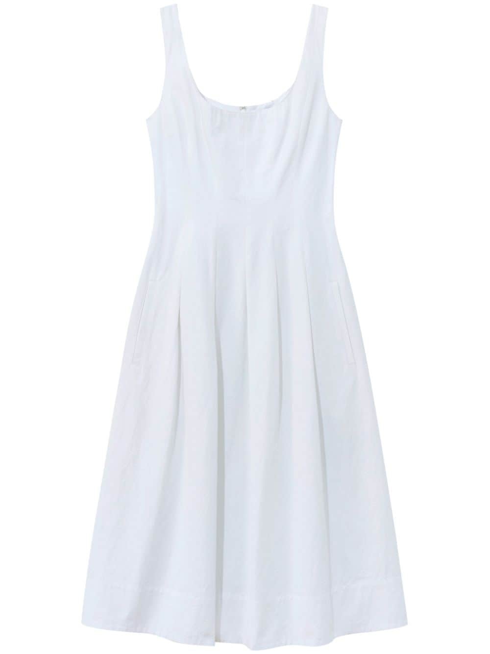 pleated cotton dress Highlights - White - Cotton - Square neck - Wide shoulder straps - Concealed rear zip fastening - Pleated skirt - Below-knee length - Straight hem Imported Composition Cotton 100% SIZE & FIT Measurement HIPS 44.09 in(112 cm) LENGTH 48.81 in(124 cm) WAIST 29.13 in(74 cm)