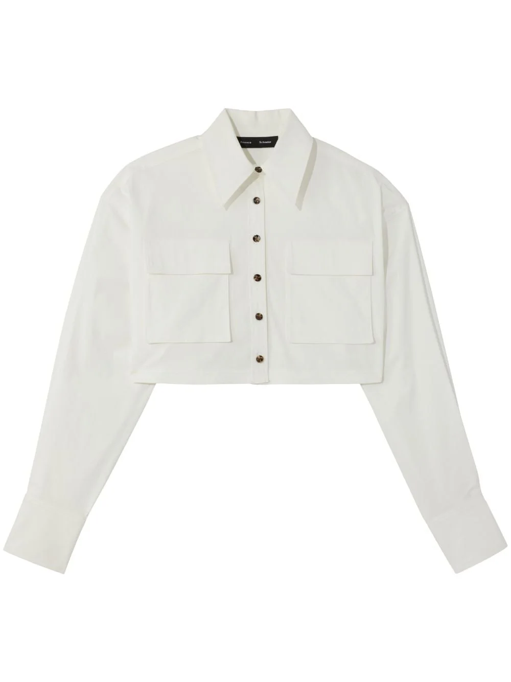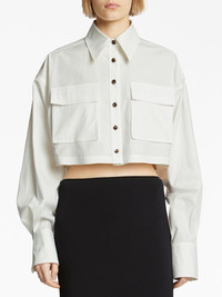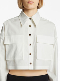 poplin cropped shirt Highlights - White - Stretch-cotton - Pointed flat collar - Front button fastening - Long sleeves - Two front flap pockets - Cropped Imported Composition Cotton 96%, Elastane 4%