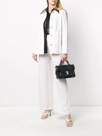 PS1 Tiny bag Sometimes the smallest things take up the most room in our hearts - there's the little black dress, the little black bag... Crafted from lambskin, this black PS1 Tiny bag from Proenza Schouler will take over your heart in a blink. Featuring a round top handle, a detachable and adjustable shoulder strap, a foldover top with hinge-lock closure, a strap closure, a main internal compartment, an internal zipped pocket, a front slip pocket, a back slip pocket and silver-tone hardware. Made in Italy Composition Outer: Lamb Skin 100% Lining: Cotton 70%, Polyester 30% SIZE & FIT Measurement DEPTH 4.33 in(11 cm) HANDLE 2.75 in(7 cm) HEIGHT 6.49 in(16.5 cm) STRAP 21.65 in(55 cm) WIDTH 10.03 in(25.5 cm)