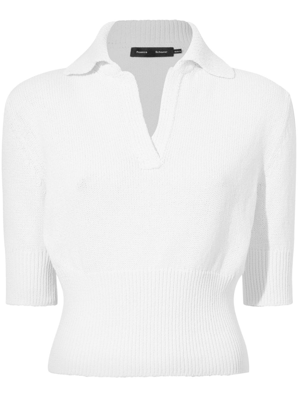 Reeve cotton-blend polo top Highlights - Optical white - Cotton blend - V-neck - Polo collar - Short sleeves - Straight hem Made in Italy Composition Cotton 92%, Nylon 8%