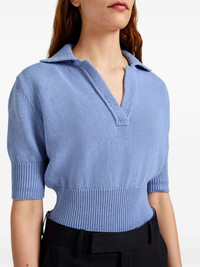 Reeve knit top Highlights - Cornflower blue - Spread collar - Split neck - Short sleeves - Ribbed cuffs and hem Imported Composition Polyamide 100%, Cotton 100%