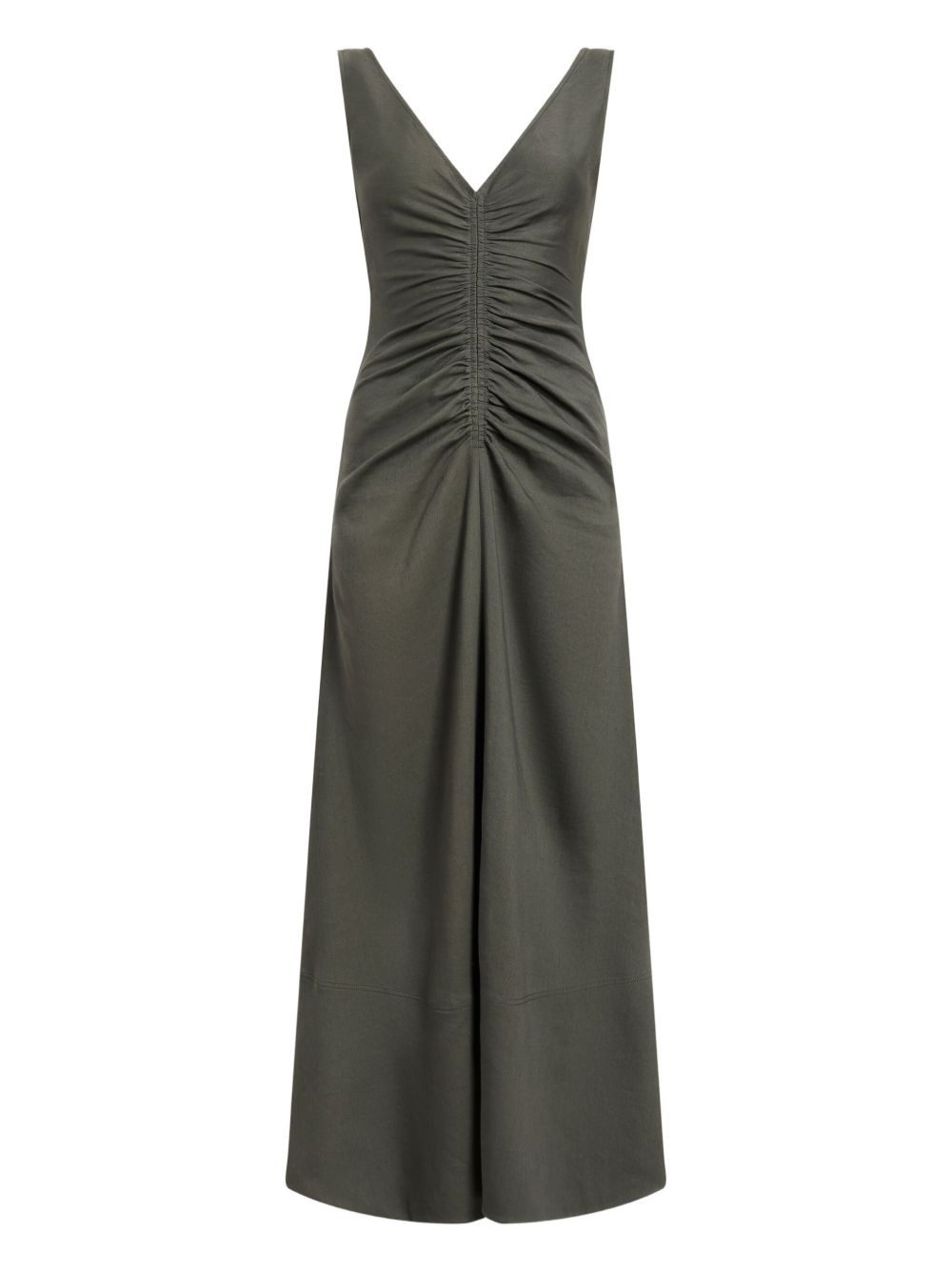 Remi maxi dress Highlights - Khaki - Slip-on style - V-neck - V-back - Gathered detailing Imported Composition Organic Linen 100%, Elastane 100%, Viscose 100% Washing instructions Read Manufacturer Guidelines