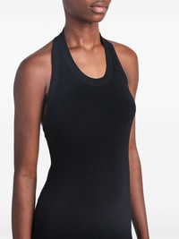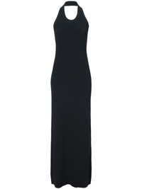 ribbed-knit halterneck dress Highlights - Black - Ribbed knit - Halterneck - Sleeveless - Floor-length - Straight hem Imported Composition Viscose 81%, Polyester 19%