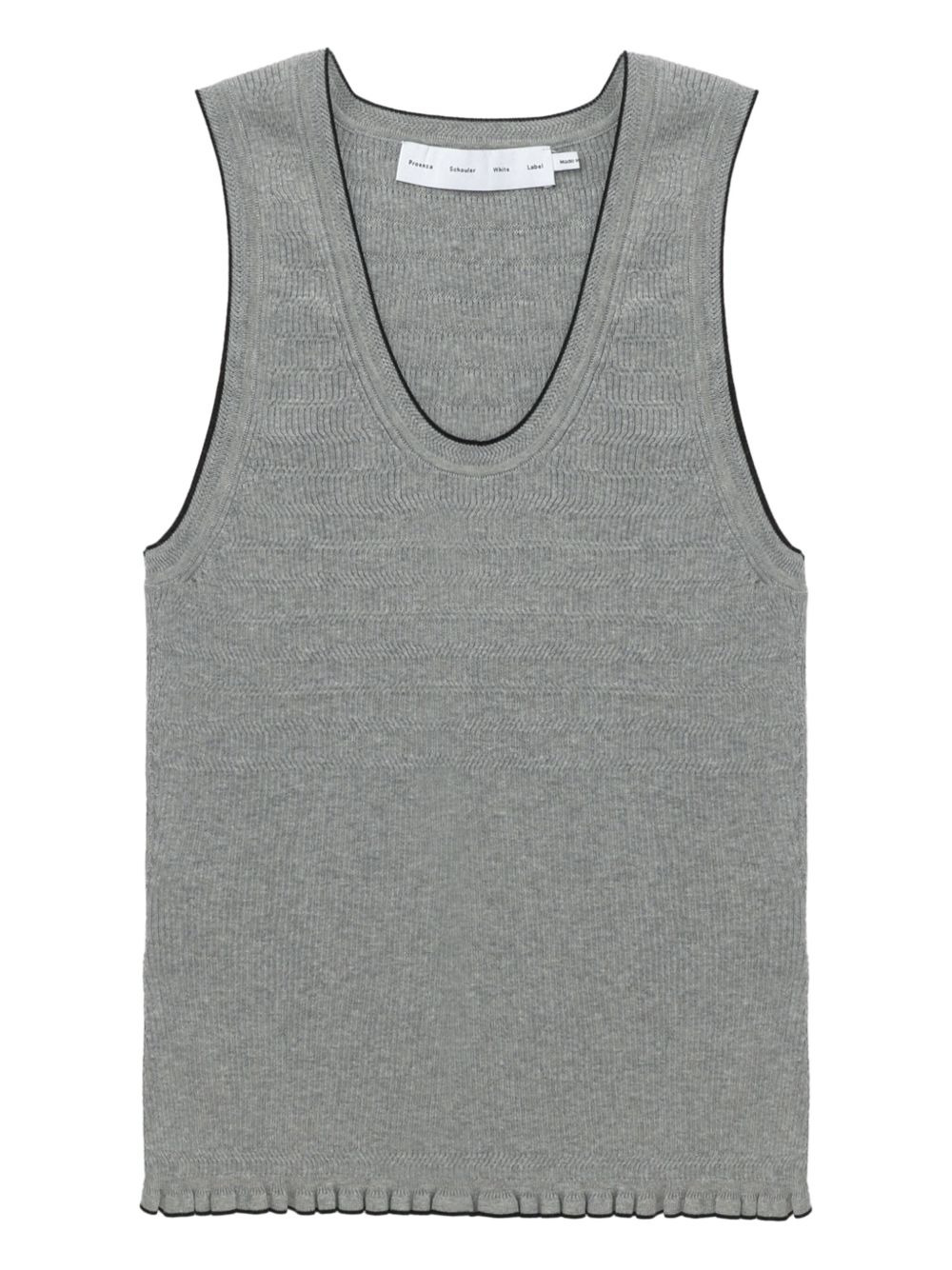 ribbed-knit ruffled tank top Highlights - Pale grey - Ribbed knit - Sleeveless - Scoop neck - Ruffled hem - Black trims Imported Composition Cotton 100% Washing instructions Read Manufacturer Guidelines