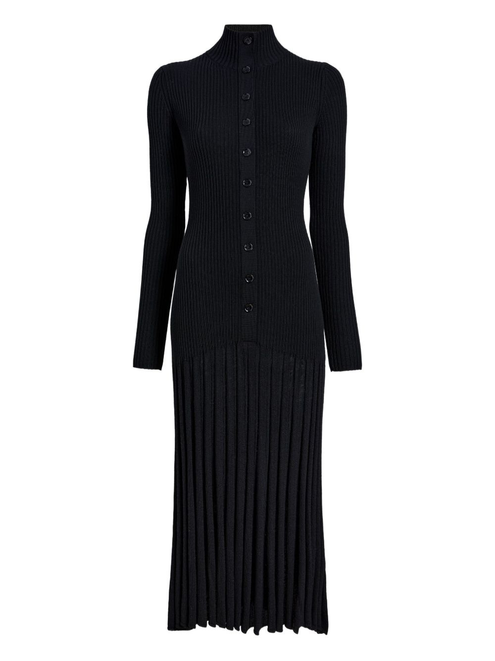 ribbed pleated midi day dress Highlights - Black - Ribbed knit - Button placket - Turtleneck - Long sleeves - Pleated skirt Imported Composition Merino 100% Washing instructions Read Manufacturer Guidelines