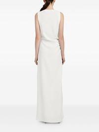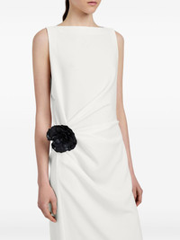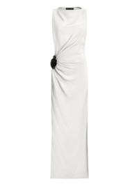 rose-embellished draped maxi evening dress Highlights - Off-white - Sleeveless design - Draped bodice - Boat neck - Black rose embellishment - Maxi length Imported Composition Triacetate 70%, Polyester 30% Washing instructions Read Manufacturer Guidelines