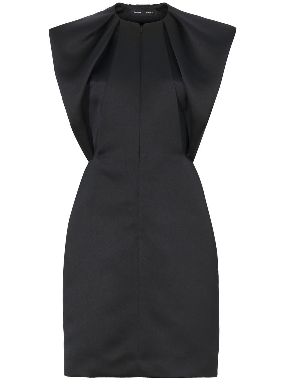 satin shift dress black satin finish ruched detailing cap sleeves fitted waistline shift style thigh-length Imported Composition Outer: Polyester 100% Washing instructions Dry Clean Only