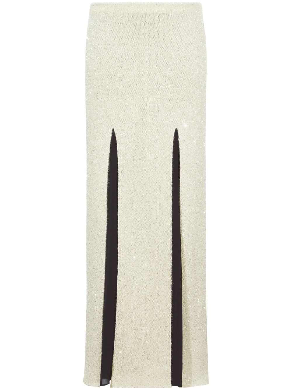 sequinned panelled maxi skirt Highlights - Ecru/black - Chiffon - Sequin design - Contrasting panel detail - Mid-rise - Elasticated waistband - Straight hem - Long length Made in Italy Composition Polyamide 55%, Polyester 45% Washing instructions Dry Clean Only