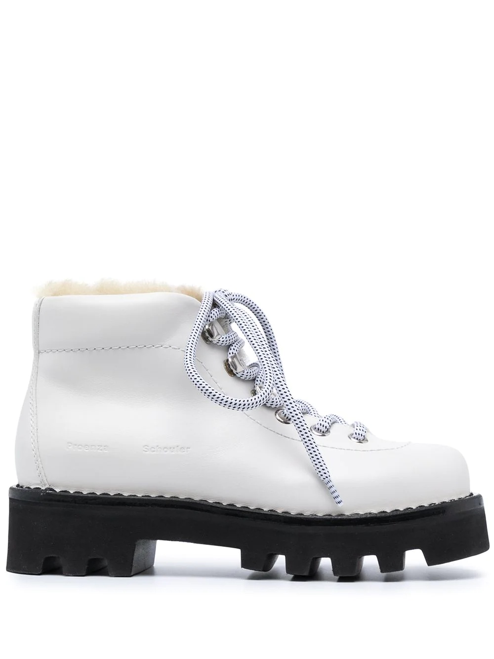 shearling hiking boots Designed for a comfortable fit, these ankle boots from Proenza Schouler are lined with soft shearling. Practicality is maintained thanks to a manageable low block heel and a ridged rubber sole. Made in Italy Composition Leather 100%