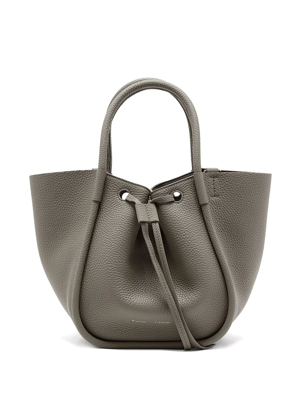 small Ruched drawstring top-handle tote bag Highlights - Grey - Calfskin leather - Top handles - Drawstring closure - Adjustable detachable shoulder strap Made in Italy Composition Outer: CALFSKIN 100% SIZE & FIT Measurement DEPTH 6.49 in(16.5 cm) HEIGHT 9.05 in(23 cm) STRAP 24.4 in(62 cm) WIDTH 13.38 in(34 cm)