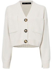 Sofia cashmere-wool cardigan Highlights - Light beige - Cashmere-wool blend - Knitted construction - V-neck - Drop shoulder - Front button fastening - Two chest patch pockets - Ribbed cuffs and hem - Straight hem Made in Italy Composition Cashmere 96%, Wool 4% Washing instructions Read Manufacturer Guidelines
