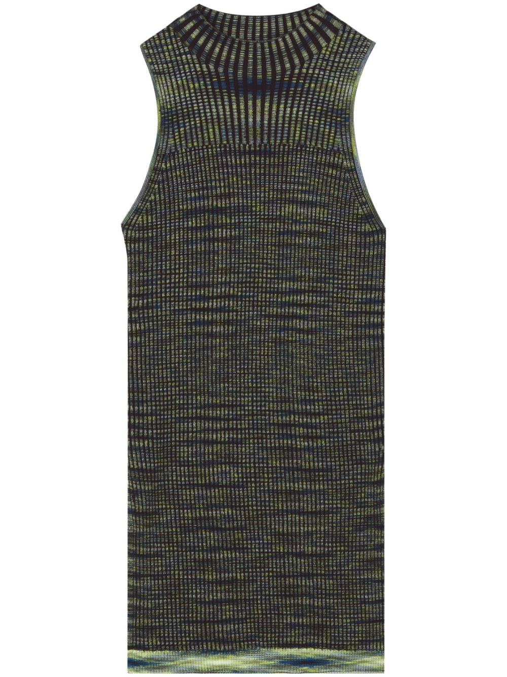 Space Dye ribbed-knit top An abstract pattern of blue and lime green lends this Proenza Schouler White Label top a signature modern feel. Its spun from a ribbed knit with an elegant mock neck design. Highlights - Black/blue/lime green - Cotton blend - Ribbed knit - Mock neck - Sleeveless - Straight hem Imported Composition Cotton 55%, Viscose 45%