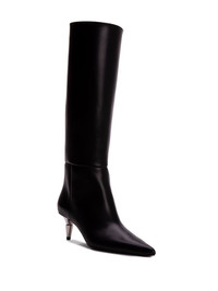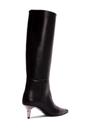 Spike pointed-toe knee-high boots Highlights - Black - Calf leather - Smooth grain - Pointed toe - Mid sculpted heel - Silver-tone hardware - Knee-high - Pull-on style Made in Italy Composition Outer: CALFSKIN 100% Lining: Calf Leather 100% Sole: Calf Leather 100%