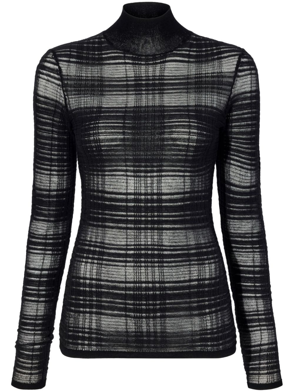 Stefanie top Highlights - Black - Fine knit - Semi-sheer construction - Check pattern - Mock neck - Long sleeves - Straight hem Imported Composition Viscose 100%, Polyester 100% Washing instructions Read Manufacturer Guidelines