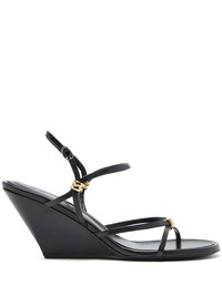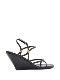 Coil strappy wedge sandals Highlights - Black - Steel embellishments - Adjustable ankle strap - Open toe design - Wedge heel - Slender straps Imported Composition Sole: Rubber 100% Lining: Fabric 100% Outer: Lambskin 100%