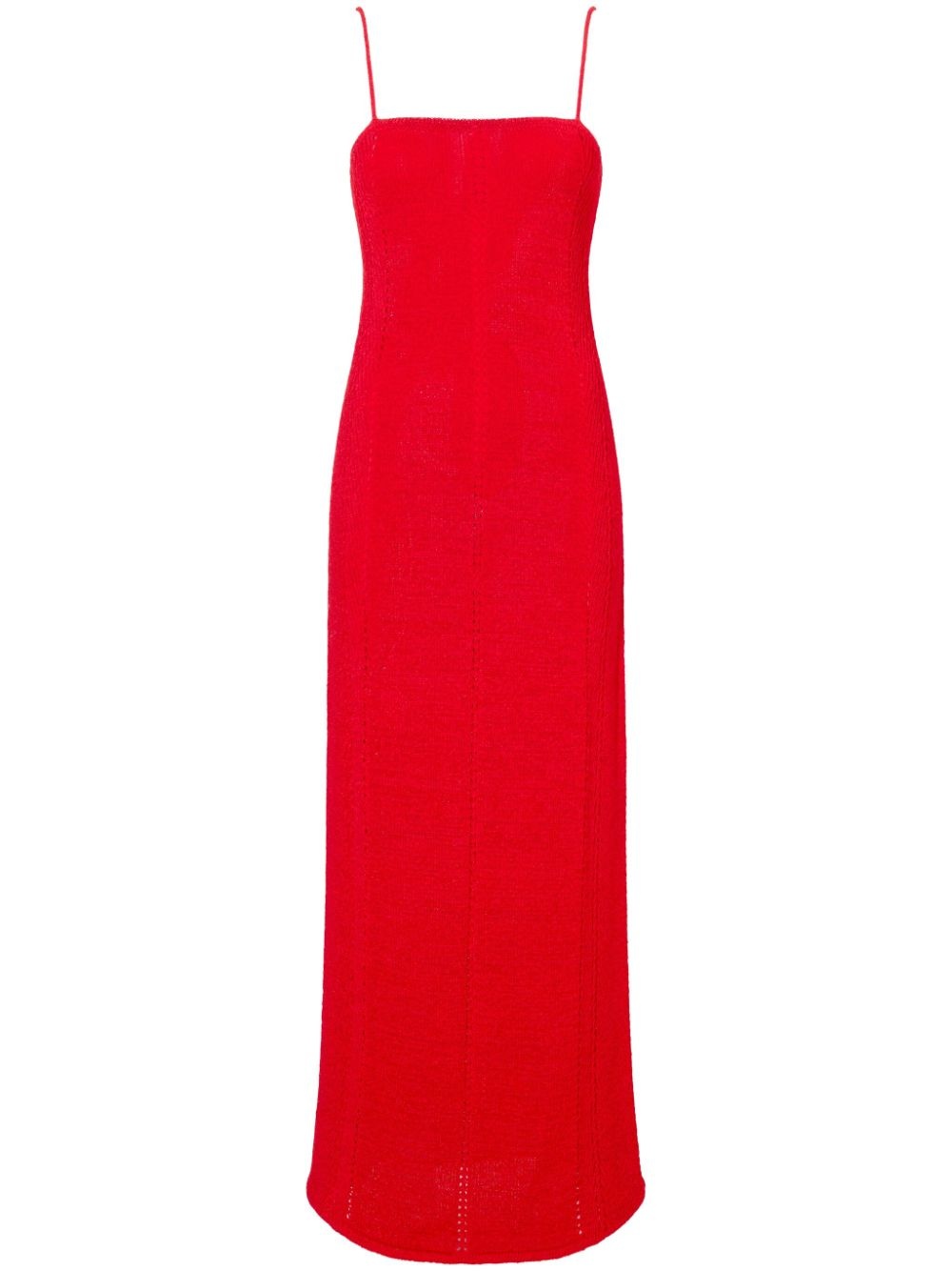 Suki dress Highlights - Red - Ribbed knit - Square neck - Thin straps - Sleeveless - Pointelle trim - Straight hem - Ankle-length Imported Composition Polyamide 54%, Viscose 46%
