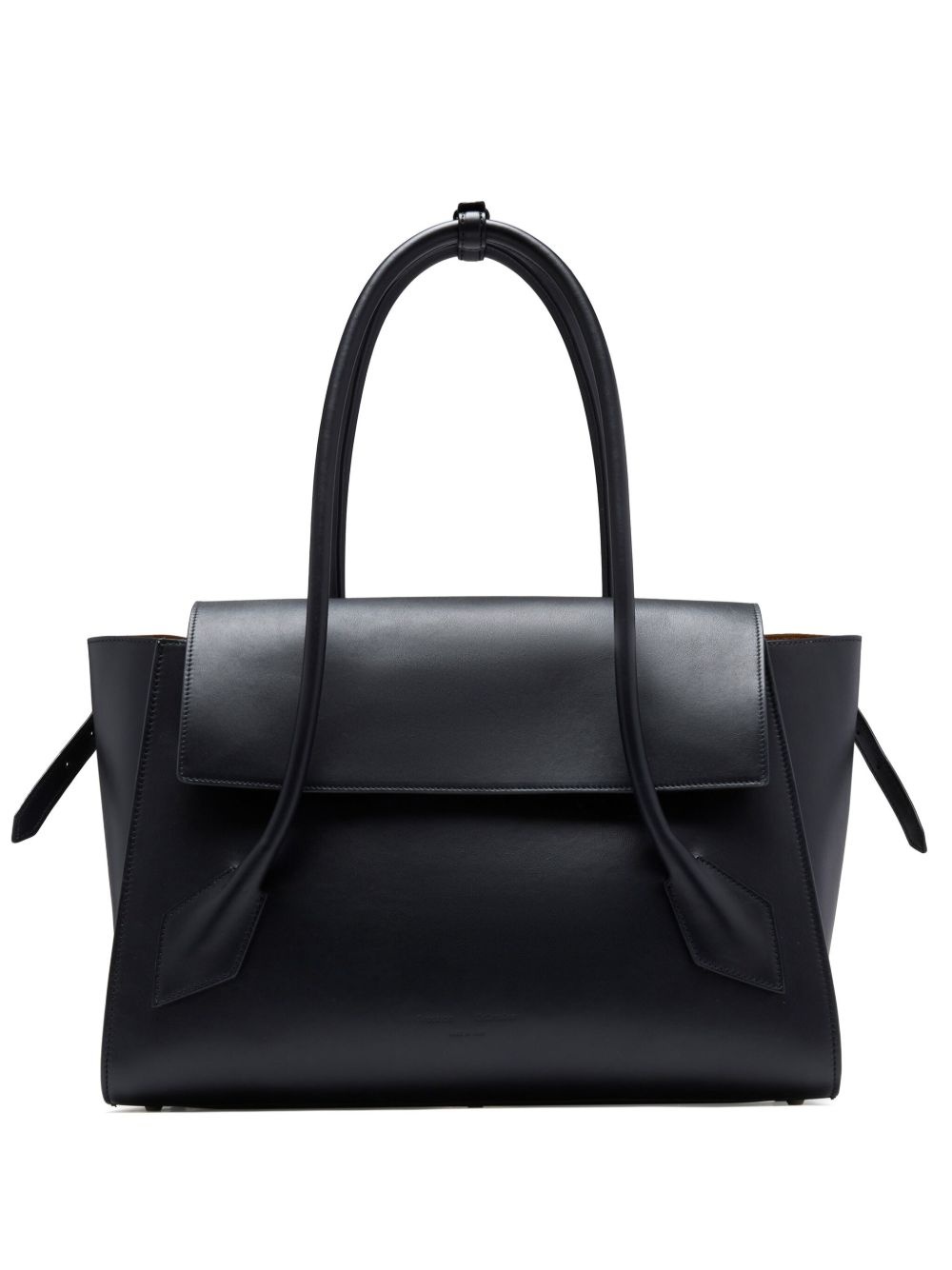 Tate tote bag Highlights - Black - Calf leather - Smooth grain - Foldover top with magnetic fastening - Two rolled top handles - Adjustable handle wrap - Main compartment - Metal feet - Suede lining - Internal zip-fastening pocket Made in Italy Composition Outer: CALFSKIN 100% SIZE & FIT Measurement DEPTH 5.9 in(15 cm) HEIGHT 10.43 in(26.5 cm) WIDTH 14.96 in(38 cm)
