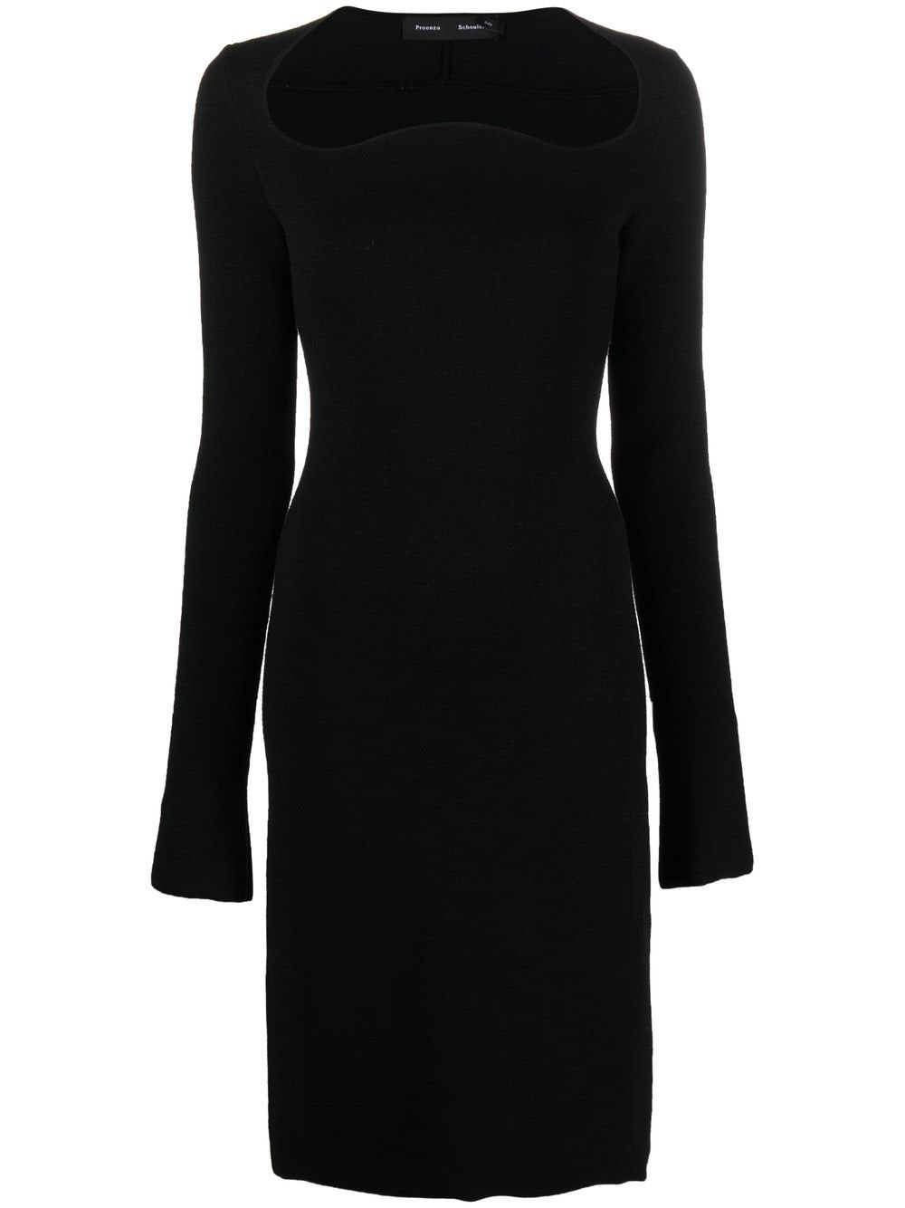 textured knit dress Spun with a knitted construction and a curved neckline, this long-sleeved midi dress from Proenza Schouler is presented in a black colourway with bell cuffs. Made in Italy Composition Viscose 70%, Polyamide 30%