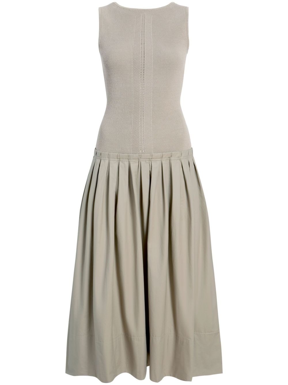 Gene pointelle-knit silk and cotton-blend and pleated cotton-poplin midi dress Taupe