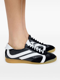 Track sneakers Highlights - Black/white - Calf leather/lambskin - Monogram side detailing - Front lace-up fastening - Round toe - Branded heel counter - Logo patch at the tongue - Round toe - Memory foam insole - Flat rubber sole Made in Italy Composition Leather 100%