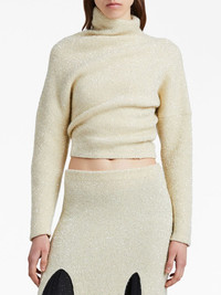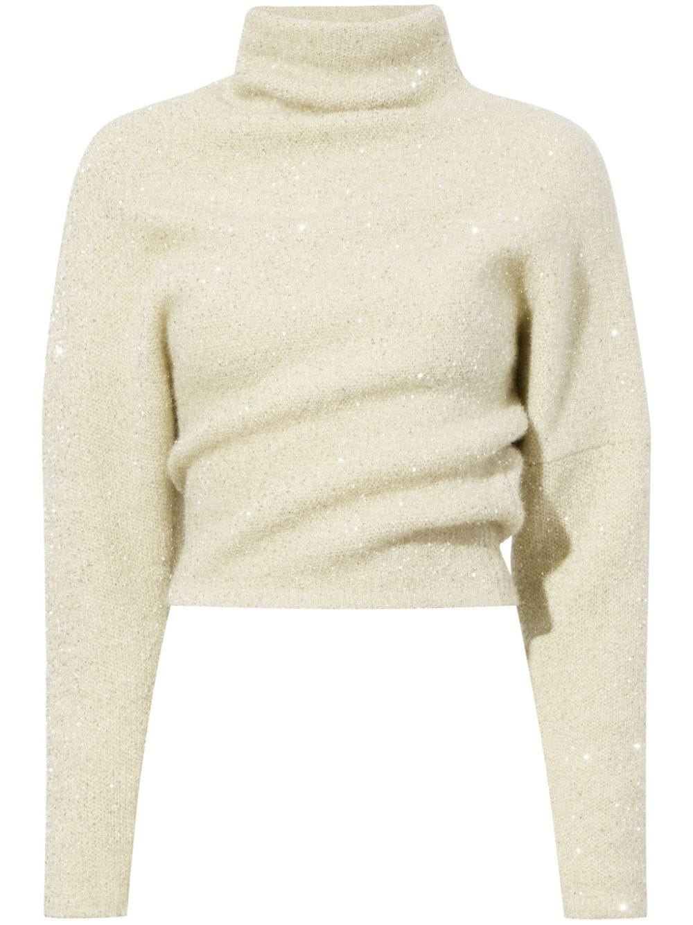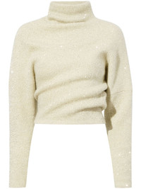 twisted sequin-embellished jumper Highlights - Ecru - Knitted construction - Sequin embellishment - Twist detailing - Funnel neck - Dolman sleeves - Ribbed hem - Cropped Made in Italy Composition Polyamide 55%, Polyester 45% Washing instructions Dry Clean Only