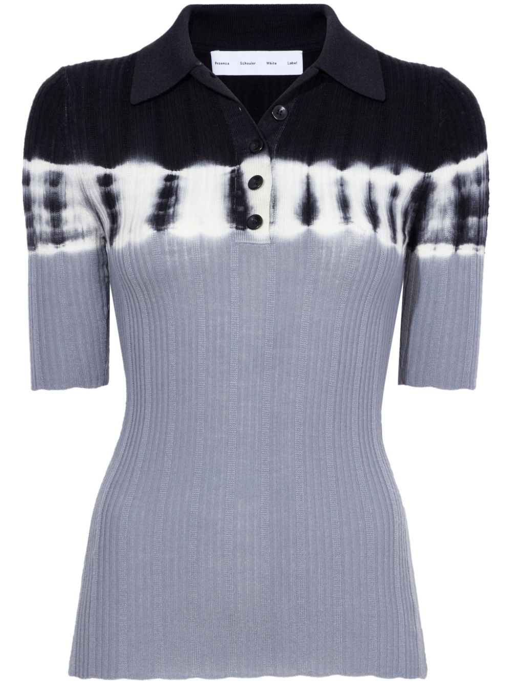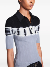 two-tone wool polo shirt Highlights - Black/white/grey - Wool - Fine ribbed - Tie-dye pattern - Polo collar - Front button placket - Short sleeves - Straight hem Imported Composition Wool 100% Washing instructions Dry Clean Only