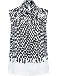 Valerie abstract-pattern top Highlights - Black/white - Two-tone design - Draped detailing - High neck - Abstract pattern print - Sleeveless - Side slit - Straight hem Imported Composition Viscose 100%