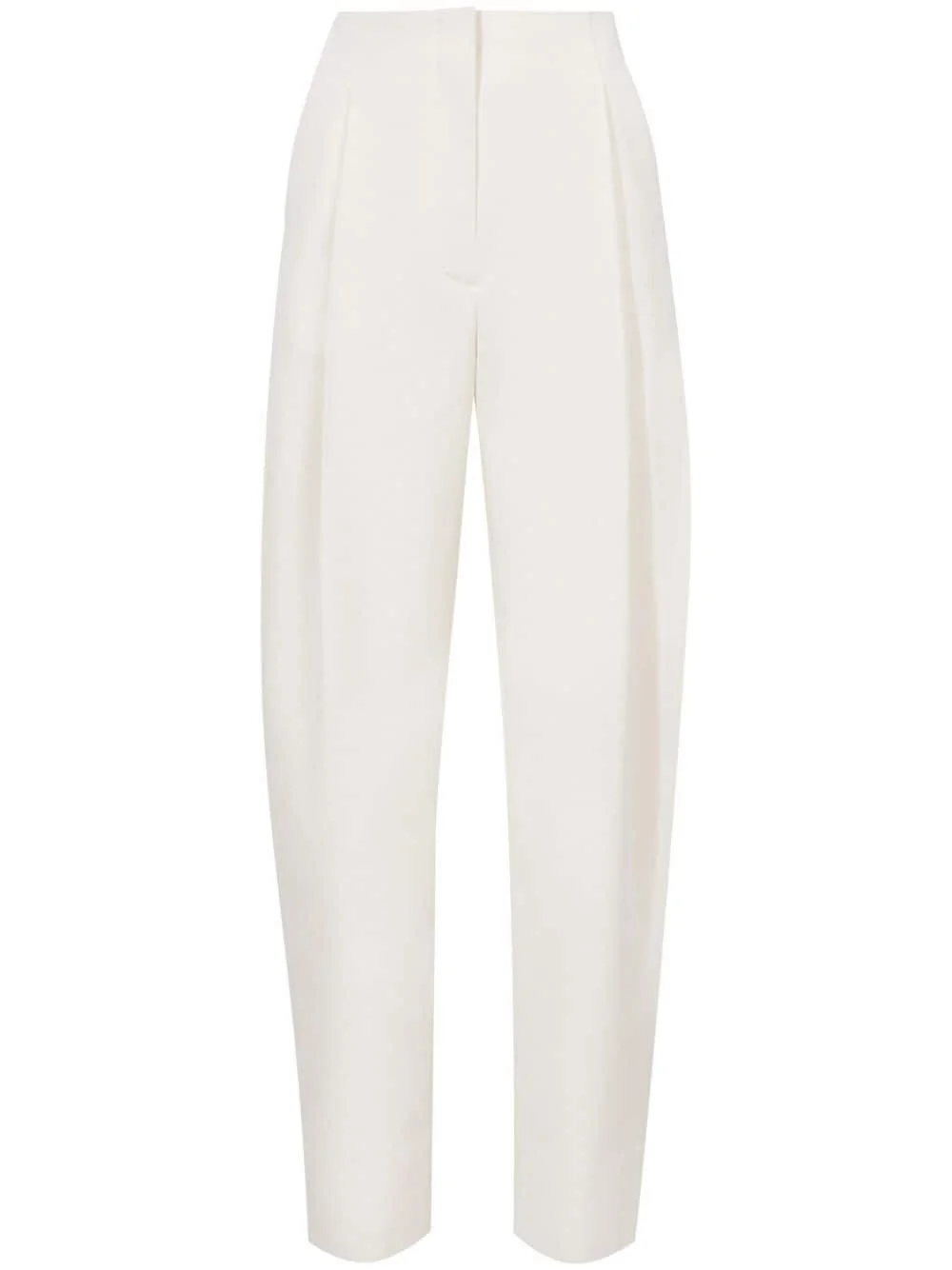 wool-twill straight-leg trousers Highlights - Bone white - Virgin wool - High waist - Concealed front fastening - Slip pockets to the sides - Box-pleat design - Straight leg Imported Composition Virgin Wool 100% Washing instructions Read Manufacturer Guidelines