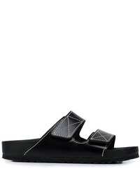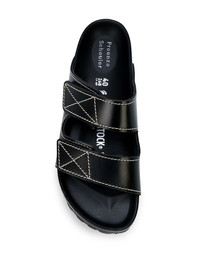 x Birkenstock Arizona sandals What happens when comfort meets style? The result would be the new collaboration between Proenza Schouler and Birkenstock and the updated Arizona slides, presented here in black leather with contrasting white stitching and fastened with touch straps. And now you get the best of both worlds. Featuring a slip-on style, an open heel, stitching details, a touch strap fastening, an open toe, a flat sole and a branded insole. Please note that the sizing for this unisex item differs from our regular Size & Fit information. Find your Birkenstock size by adding 31 to U.S. women's sizes and 33 to U.S. men’s sizes. Width: sizes 36-40 are Birkenstock Narrow, sizes 41-44 are Birkenstock Regular. Please reference Birkenstock's size guide for detailed sizing information. Imported Composition Outer: Leather 100% SIZE & FIT Measurement HEEL 1.49 in(3.8 cm) Sole height 0.78 in(2 cm)