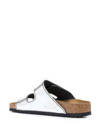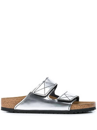 x Birkenstock Arizona slides What happens when comfort meets style? The result would be the new collaboration between Proenza Schouler and Birkenstock and the updated Arizona slides, presented here in silver leather and fastened with touch straps. And now you get the best of both worlds. Featuring a metallic sheen, a slip-on style, an open heel, a touch strap fastening, an open toe and a flat sole. Please note that the sizing for this unisex item differs from our regular Size & Fit information. Find your Birkenstock size by adding 31 to U.S. women's sizes and 33 to U.S. men’s sizes. Width: sizes 36-40 are Birkenstock Narrow, sizes 41-44 are Birkenstock Regular. Please reference Birkenstock's size guide for detailed sizing information. Imported Composition Outer: Calf Leather 100% SIZE & FIT FittingInformation This piece is unisex. Please take care when selecting your size This piece fits large - you might like to get one size down Measurement HEEL 1.49 in(3.8 cm) Sole height 0.78 in(2 cm)