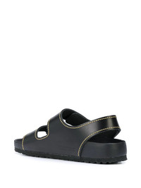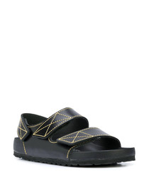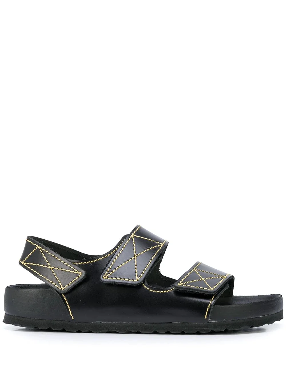 x Birkenstock Milano sandals What happens when comfort meets style? The result would be the new collaboration between Proenza Schouler and Birkenstock and their updated Milano sandals, presented here in black leather with contrasting yellow stitching and fastened with touch straps. And now you get the best of both worlds. Featuring a strappy design, a touch strap fastening, stitching details, an open toe, a flat sole and a branded insole. Please note this item is unisex and sold in men's sizing. Imported Composition Outer: Calf Leather 100% SIZE & FIT FittingInformation This piece is unisex. Please take care when selecting your size This piece fits large - you might like to get one size down Measurement HEEL 1.49 in(3.8 cm) Sole height 0.78 in(2 cm)