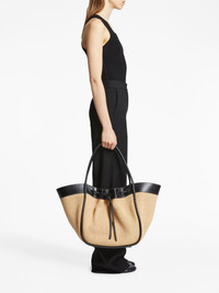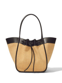 XL raffia ruched tote Highlights - Beige/black - Leather - Interwoven design - Drawstring fastening - Circular top handles - Main compartment - Full lining Made in Italy Composition Outer: Leather 100%