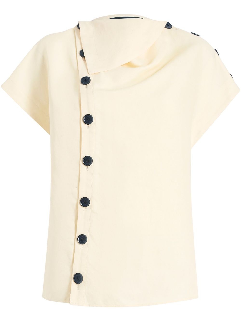 Zion blouse Highlights - Light beige - Off-centre front button fastening - Folded edge - Short raglan sleeves Imported Composition Viscose 59%, Linen/Flax 41%