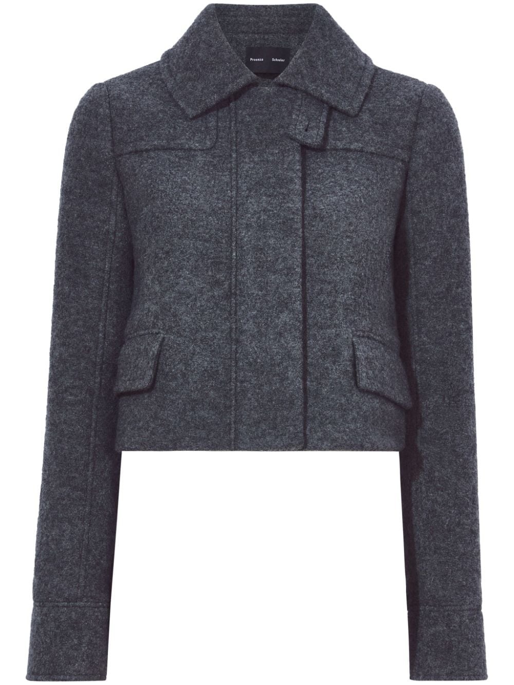 zipped wool cropped jacket Highlights - Grey - Wool - Knitted construction - Concealed front zip fastening - Front flap pockets - Classic collar - Long sleeves - Cropped - Straight hem Imported Composition Lining: Acetate 65%, Polyester 35% Outer: Wool 100% Washing instructions Dry Clean Only