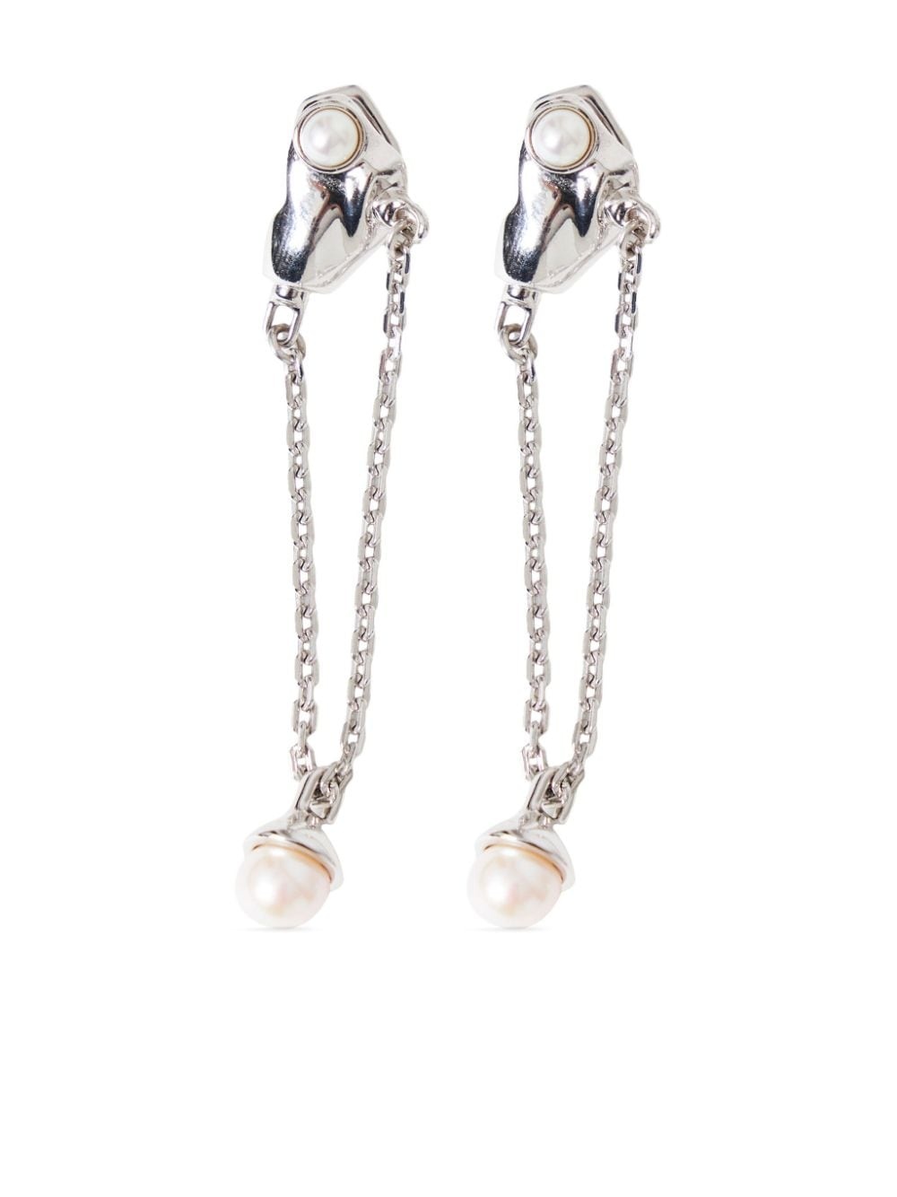 chain-detail earrings Highlights - Silver-tone - Silver plated - Asymmetric design - Chain-link detailing - Faux-pearl embellishment - These earrings come as a pair. Imported