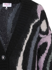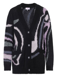 abstract-patter cardigan Highlights - Black - Abstratc pattern - V-neck - Front button fastening - Front pockets - Long sleeves Made in Italy Composition Mohair 62%, Polyamide 27%, Viscose 6%, Wool 5% Washing instructions Read Manufacturer Guidelines