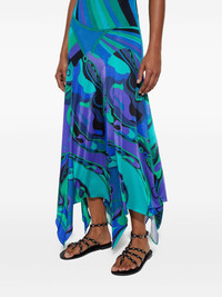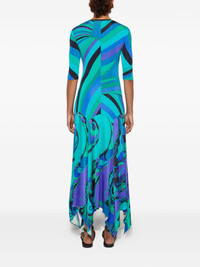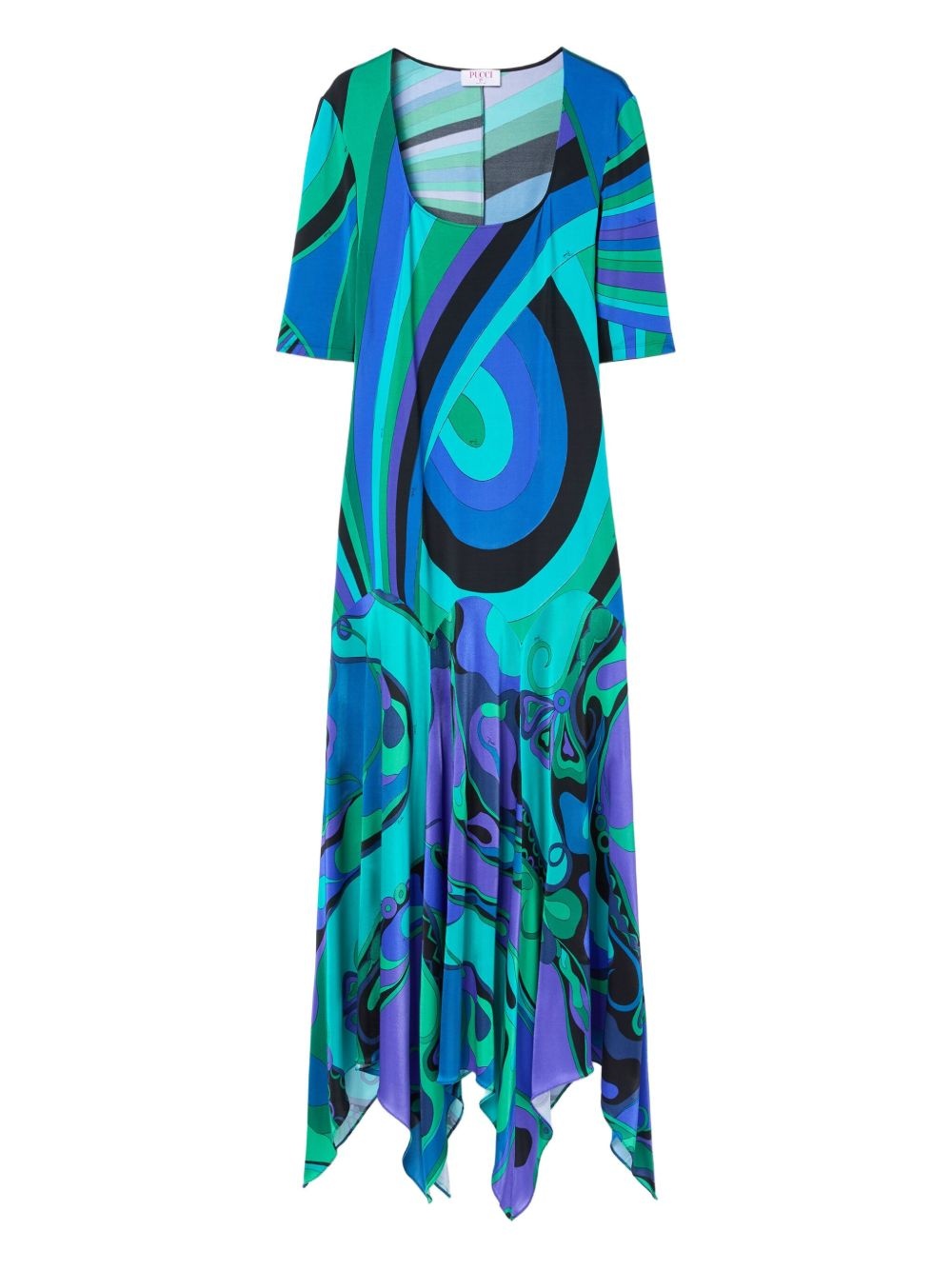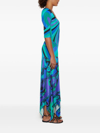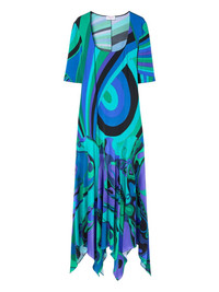 asymmetric-hem maxi dress Highlights - Blue and green - Scoop neckline - Short sleeves - Iride print - Flowing silhouette - Asymmetric hem Made in Italy Composition Satin 100% Washing instructions Read Manufacturer Guidelines