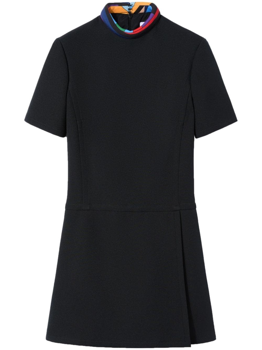 cady-texture mini dress Highlights - Black/multicolour - Cady texture - Concealed rear zip fastening - Abstract pattern print - Mock neck - Short sleeves - Fitted waistline - A-line - Straight hem - Thigh-length Made in Italy Composition Outer: Polyester 92%, Elastane 8% Washing instructions Read Manufacturer Guidelines