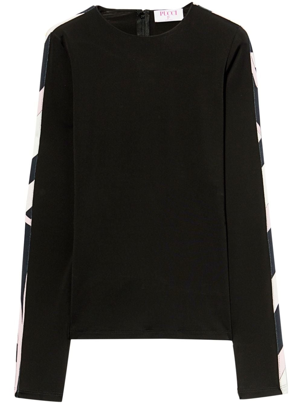 contrast-trim long-sleeve top Highlights - Black/multicolour - Contrasting trim - Abstract pattern print - Long sleeves - Rear zip fastening - Crew neck - Straight hem Made in Italy Composition Fabric 100%