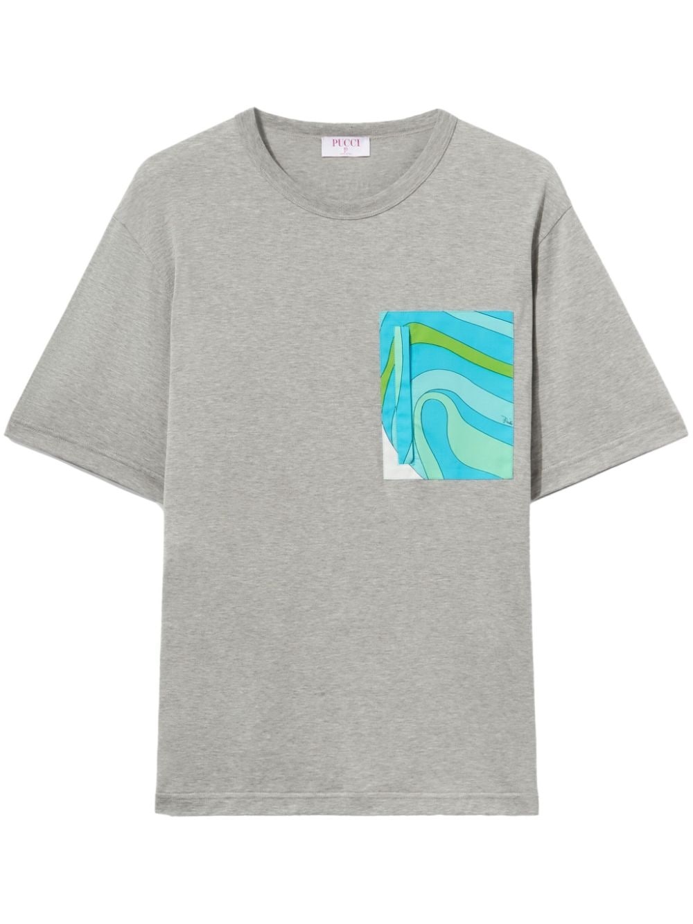 contrasting-pocket cotton T-shirt PUCCI adds a lively element to a minimalist basic with this heather-grey T-shirt. Cut from cotton jersey to a short-sleeve silhouette, it's adorned with a Marmo-print chest pocket, adding a pop of colour and a nod to the brand's heritage. Highlights - Heather grey - Cotton - Jersey texture - Abstract pattern print - Contrasting panel detail - Crew neck - Drop shoulder - Short sleeves - Chest patch pocket - Straight hem Made in Italy Composition Cotton 100%