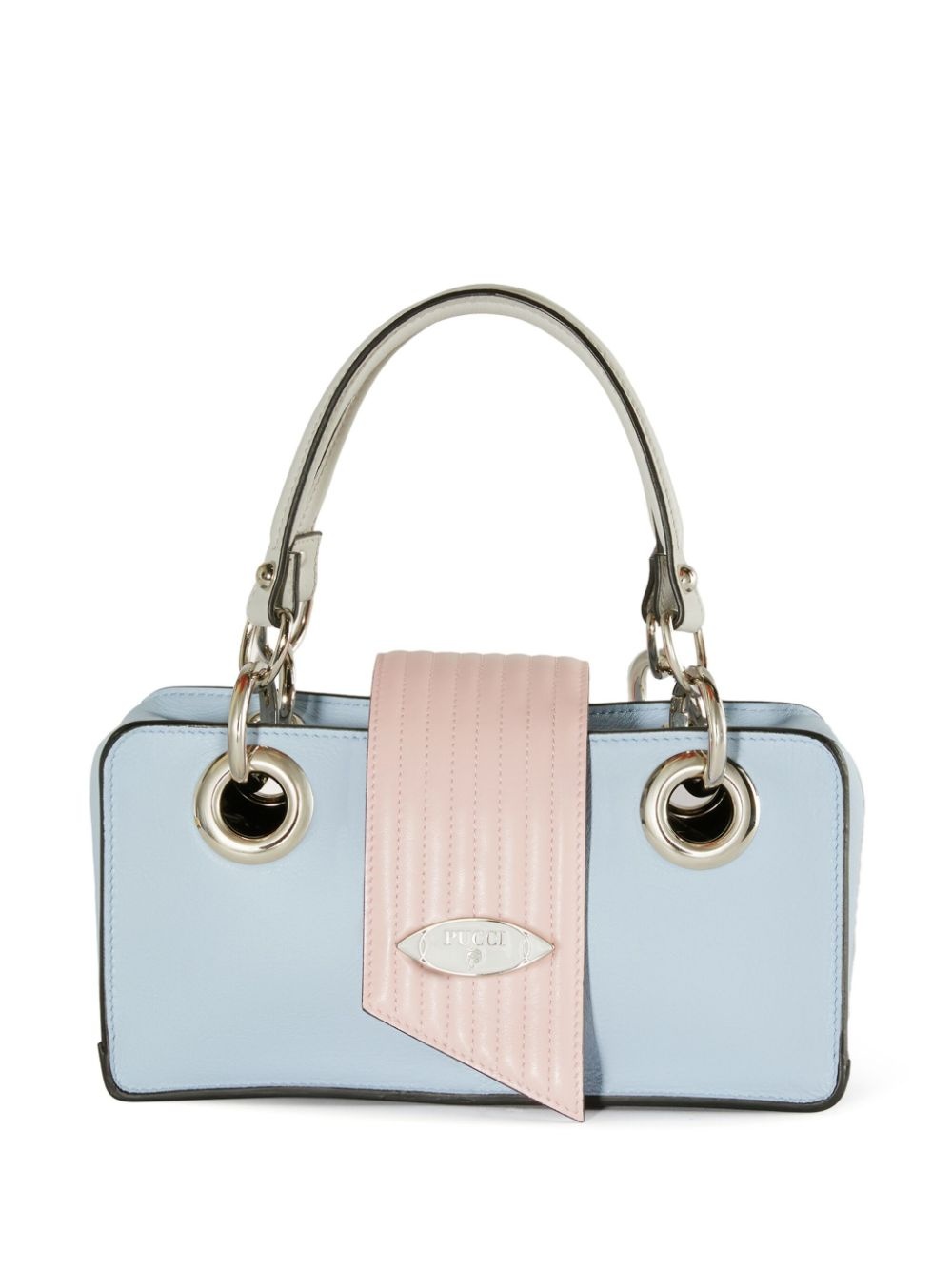 Crush shoulder bag Highlights - Blue/light pink/white - Leather - Pebbled texture - Two-way zip top fastening with logo charm zip pullers - Two detachable top handles - Adjustable detachable shoulder strap - Contrasting quilted leather strap to the front - Logo plaque to the front - Silver-tone hardware - Main compartment Made in Italy Composition Outer: Leather 100%