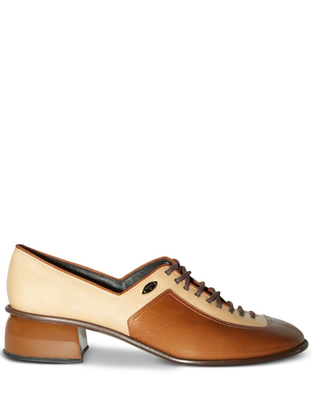 Deby panelled leather loafers Highlights - Beige/dark brown - Leather - Colour-block panelled design - Round toe - Front lace-up fastening - Branded leather insole - Block heel - Flat leather sole Made in Italy Composition Sole: Leather 100% Outer: Leather 100% Lining: Leather 100% SIZE & FIT Measurement HEEL 0.78 in(2 cm)