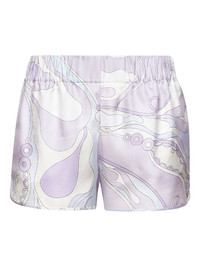 elasticated-waistband Orchidee-print shorts Highlights - Lavender purple - Orchidee print - Elasticated waistband - Side in-seam pockets - Silk Made in Italy Composition Silk 100% Washing instructions Read Manufacturer Guidelines