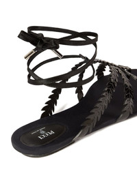 feather embellished sandals Highlights - Black - Leather - Feather embellishment - Wraparound ankle strap - Thong strap - Flat sole Made in Italy Composition Outer: Leather 100% Lining: Leather 100% Sole: Rubber 100%