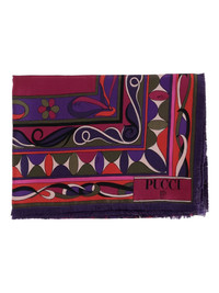 geometric-print frayed scarf Highlights - Purple/multicolor - Geometric print - Fringed edge - Silk - Rectangular design - Logo detail Made in Italy Composition Silk 100%