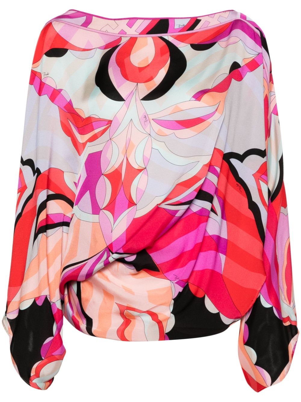 geometric-print silk top Highlights - Pink/multicolour - Silk - Geometric print - Boat neck - Long sleeves - Curved hem - Side button fastening Made in Italy Composition Silk 100% SIZE & FIT Model measurements Height 5 ft 11 in(1.8 m) Bust/Chest 33.07 in(84 cm) Hips 37.4 in(95 cm) Waist 25.19 in(64 cm) FittingInformation Designed to be unstructured, offering a loose fit throughout Made from a lightweight non-stretch fabric This piece fits true to size – take your usual size