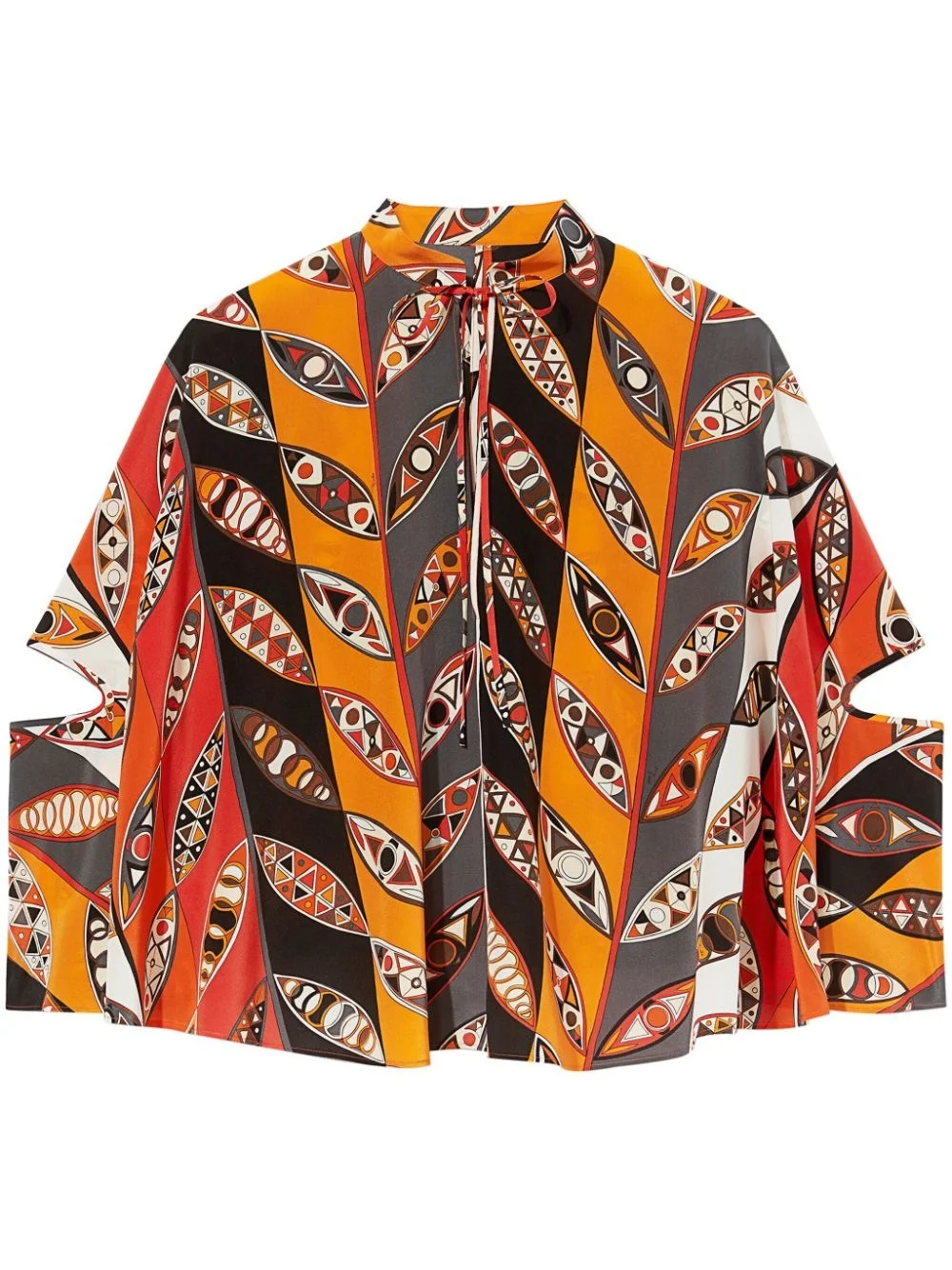 Girandole-print blouse This PUCCI blouse is the epitome of the brand's vibrant and eye-catching aesthetic. Stamped with the House's Girandole print, the top boasts a tie fastening at the collar and is distinguished with wide sleeves with a cut-out, allowing it to be worn as a long or short sleeve. Highlights - Orange/red/charcoal grey/multicolour - Silk - Band collar - V-neck - Front tie fastening - Wide sleeves Made in Italy Composition Silk 100% Washing instructions Read Manufacturer Guidelines
